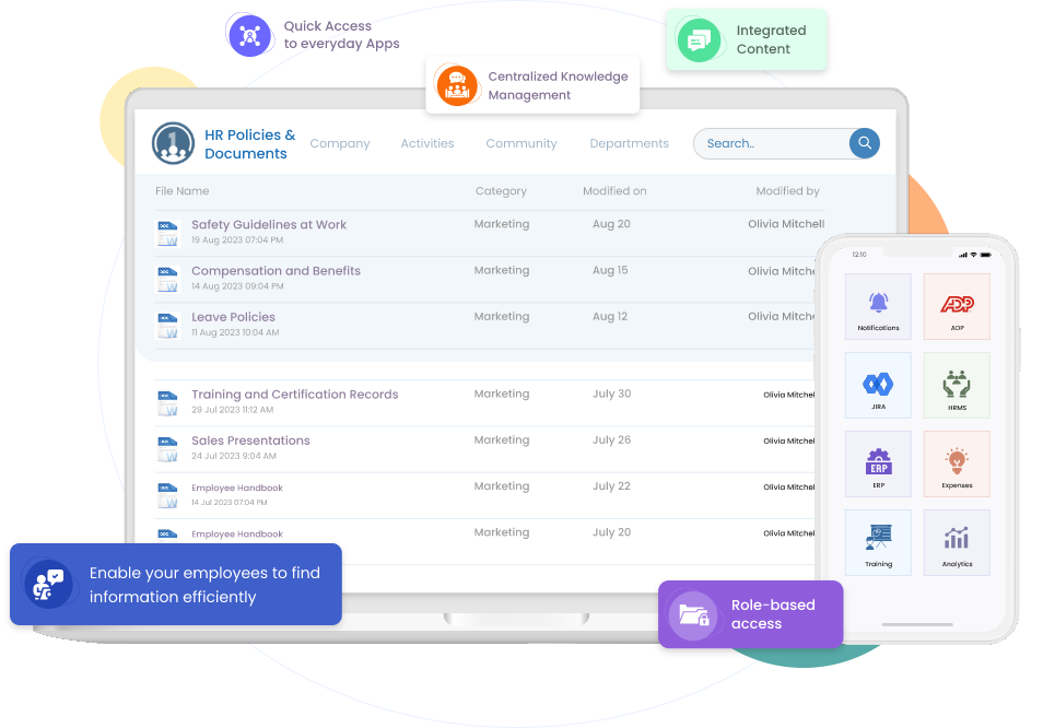 Enjoy faster access to collaboration tools, applications, and resources. PeopleOne provides a single-pane experience for your teams to accomplish tasks seamlessly.