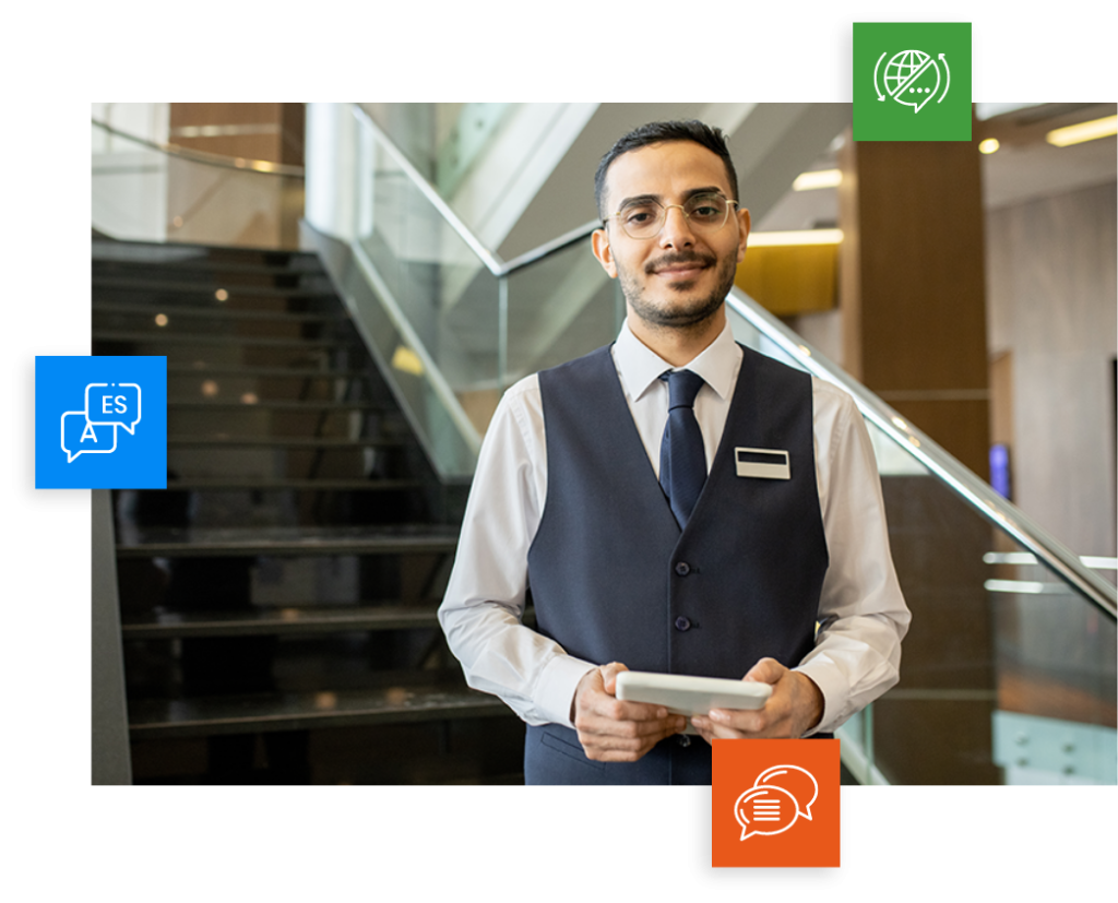 Establish an inclusive work environment by encouraging staff to communicate in their preferred language. Equip non-native English speakers with helpful videos and images during their training.